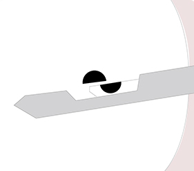 비교적 굵은 바늘이 끝에 달려 있고 바늘은 회전칼로 구성되어 있습니다.