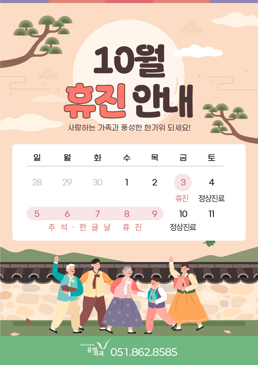 ?? 10월 5일(일) ~ 10월 9일(목) 추석 및 한글날 휴진