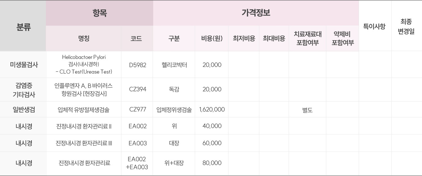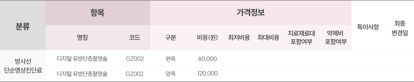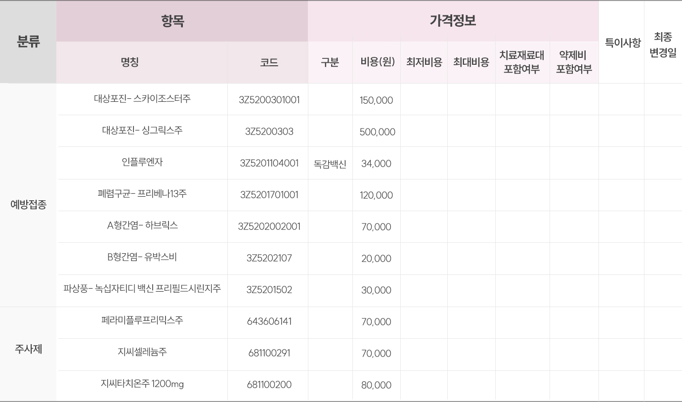 의료법 제 45조 및 의료법 시행규칙 제 42조의 2(비급여 진료비용 등의고지)에 따라 비급여를 고지합니다.