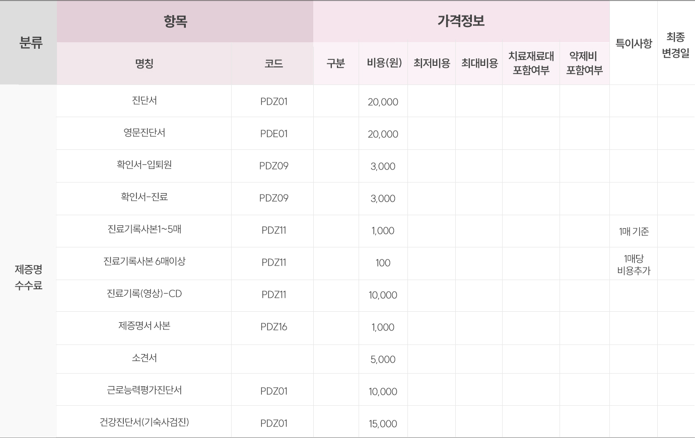 비급여진료 및 제증명안내