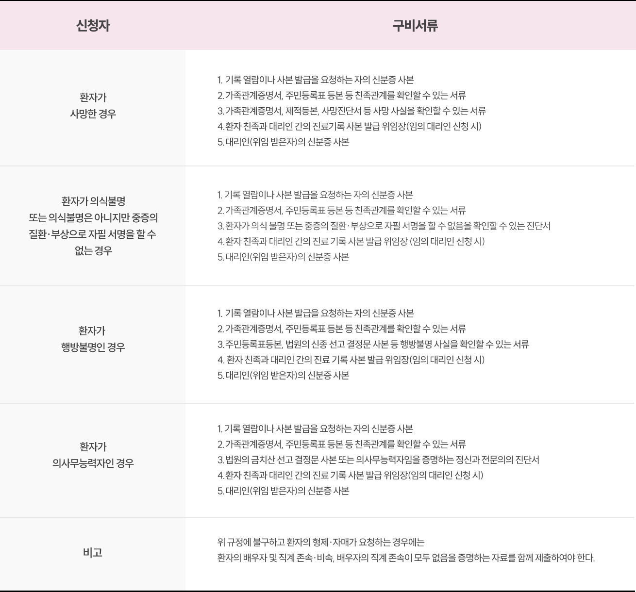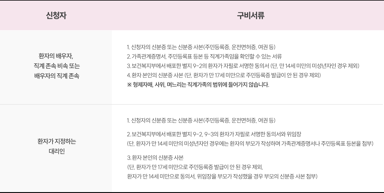환자의 동의를 받을 수 없는 경우에는 환자의 직계가족만이 신청 가능합니다.